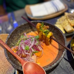 I've lived on the UES for more than a decade and I'm embarrassed to say that it was just last week I came here as wowza, the food is top notch. The presentation is also beautiful, with care and flair on each dish. It's a feast for the eyes as well as your taste buds. You can't go wrong honestly with anything you choose as we saw dish after dish hit the tables around us and all looked like home runs. The spicy ceviche was delicious and had a nice mix of seafood. The octopus was tender and moist with just the right sear. The fried plantains with goat cheese, wow! And the tuna + watermelon is a killer combo. And holy tres leches! That was a do not miss finisher. Drinks were also very good and just a perfect Saturday night starter. I would say, the temp of the restaurant was wayyyyy too hot given these summer temps. The restaurant needs to be a real place for relief and not just a "slightly cooler" version of outside. We really needed it to be much more chill, in fact, we probably would have had an extra round, but we needed to find a cooler bar to enjoy another round as this spot was very warm as the night picked up too.